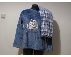 Pyjama - Pyjama Winter - Pyjama fleece - winterpyjama - trui en broek - Dames - Ronde Hals - maat L - poesjes - poesjes in love - tekst sweet time -Super zacht - HQ - broek geruit- Roze of grijs of blauw